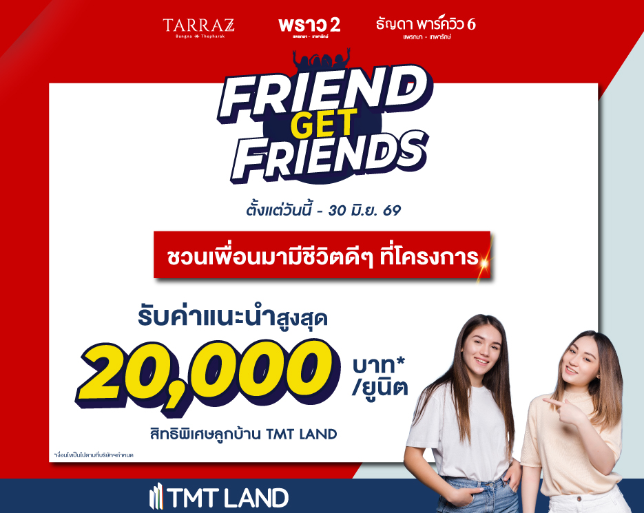 ฟรี! ทอง มูลค่า 300,000* | ฟรี! ของแถม 17 รายการ* | ชวนเพื่อนซื้อบ้าน รับค่าแนะนำ*